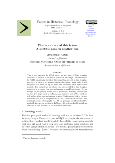 pihph - Papers in Historical Phonology Article (PiHPh)